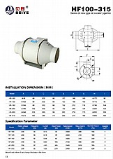 מפוח אינליין "12, 315מ"מ, פלסטי 2400m³/h, 1416CFM, 270W מק"ש, 50db