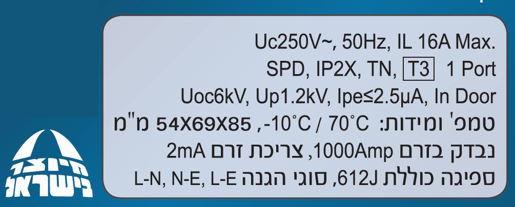 מגן ברקים שקע תקע הטוב בישראל, 16A.